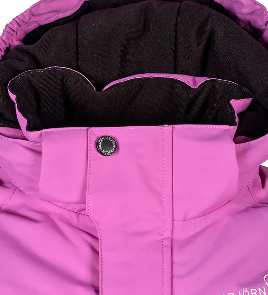 Flot Isbjörn Of Sweden vinterjakke i mørk pink. Vinterjakken har hvide logoprint på venstre bryst og hætten samt smarte refleksprint på lænden og højre skulder.