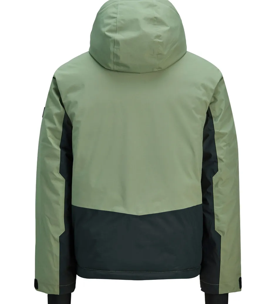 Moderne Jack & Jones vinterjakke i en flot grøn nuance med sorte kontrastområder.