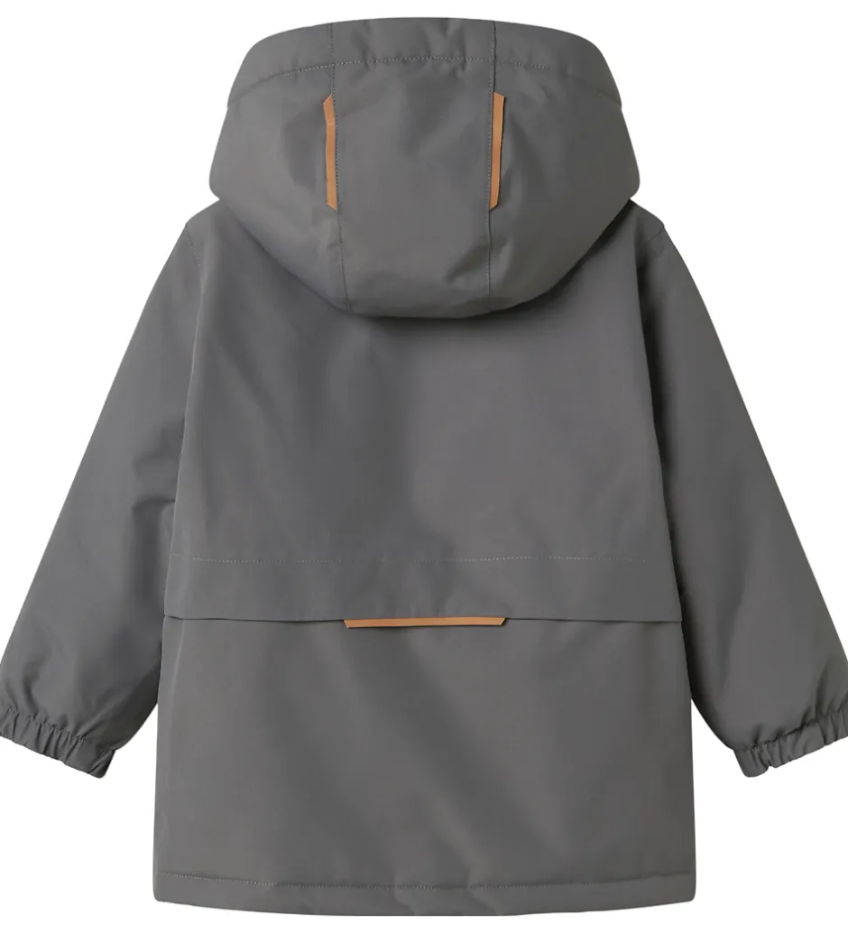 Smart Lil’ Atelier vinterjakke i mørkegrå. Vinterjakken har velplacerede refleksprint og -detaljer.