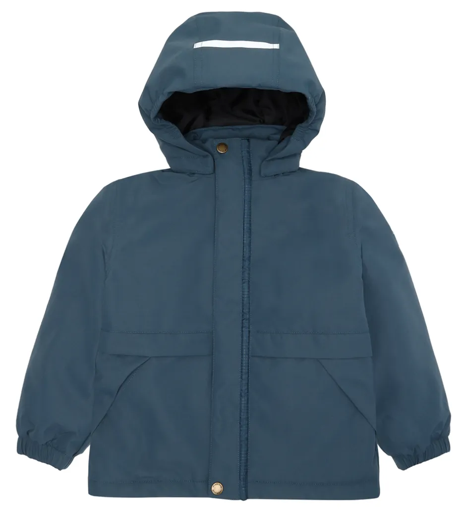 Smart Mikk-Line vinterjakke i ensfarvet, mørk, støvet blå med praktiske refleksprint og en sej lysfunktion.