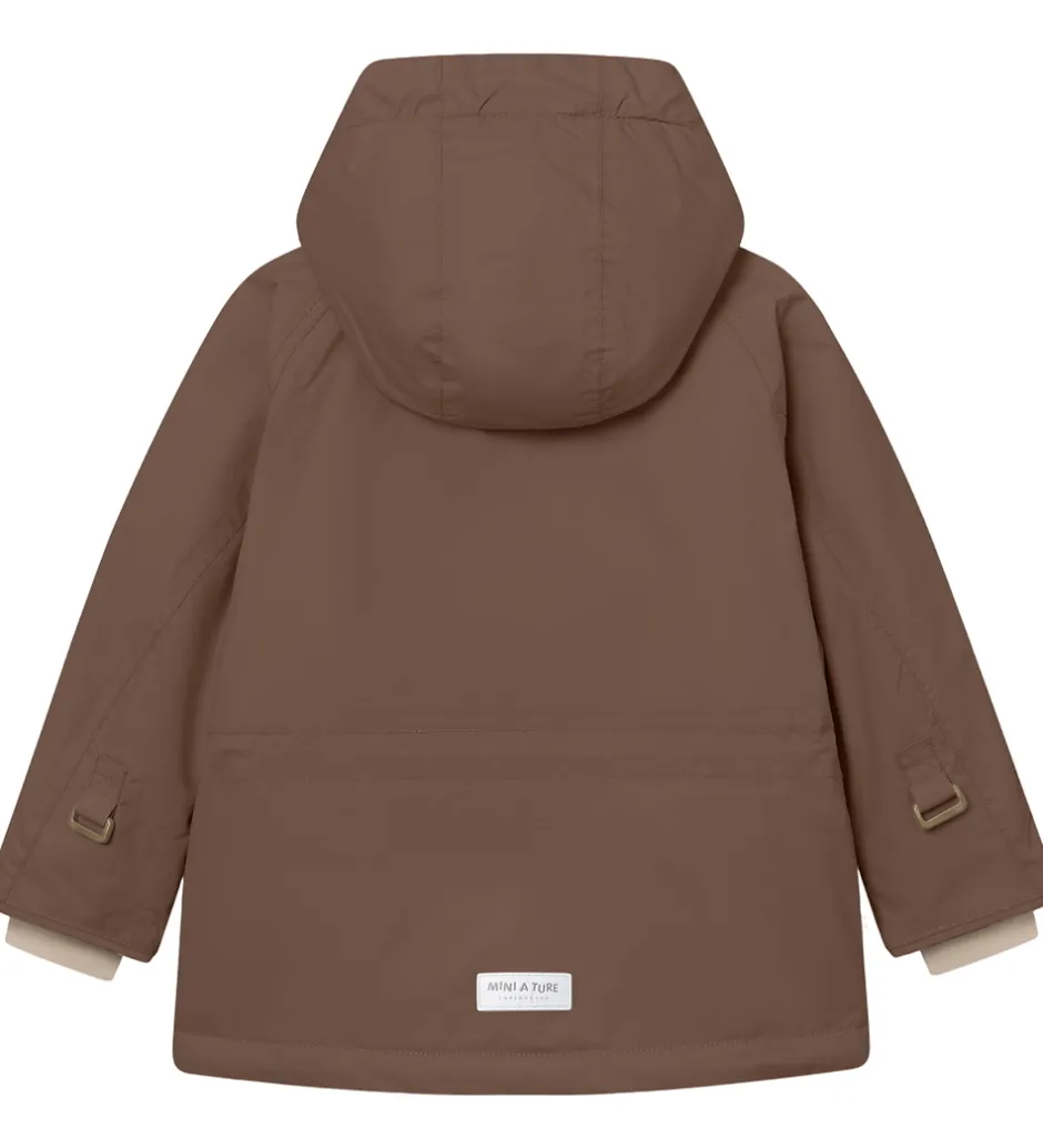Fin Mini A Ture vinterjakke i kastanjebrun. Vinterjakken er med beige for.