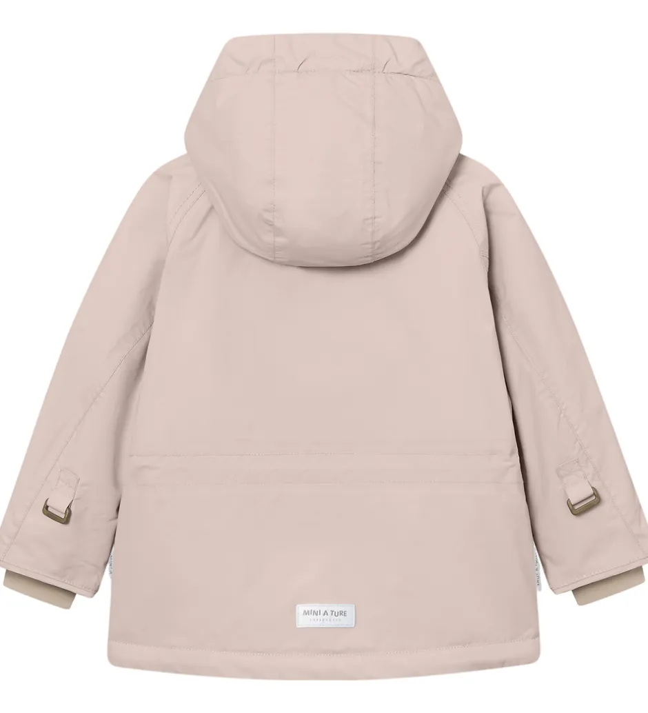 Fin Mini A Ture vinterjakke i lys rosa. Vinterjakken er med beige for.
