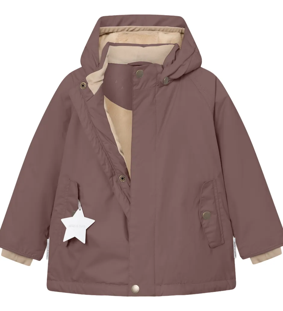 Fin Mini A Ture vinterjakke i mat, mørk blommelilla. Vinterjakken er med beige for.