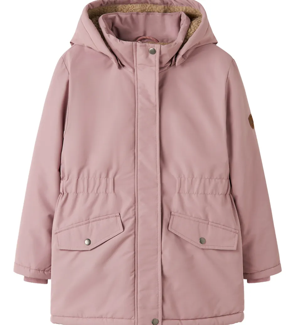 Flot Name It vinterjakke i støvet rosa.