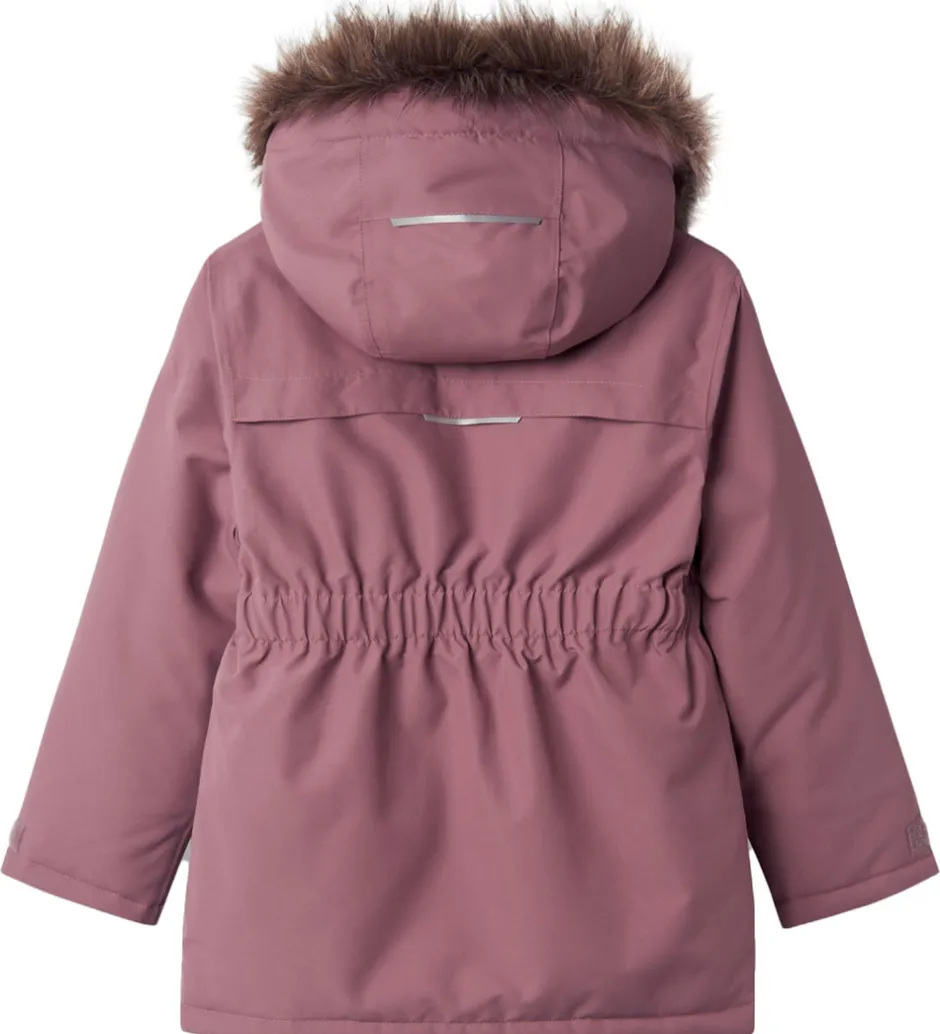 Flot Name It vinterjakke i rosa med en lækker kant af imiteret pels på hætten.