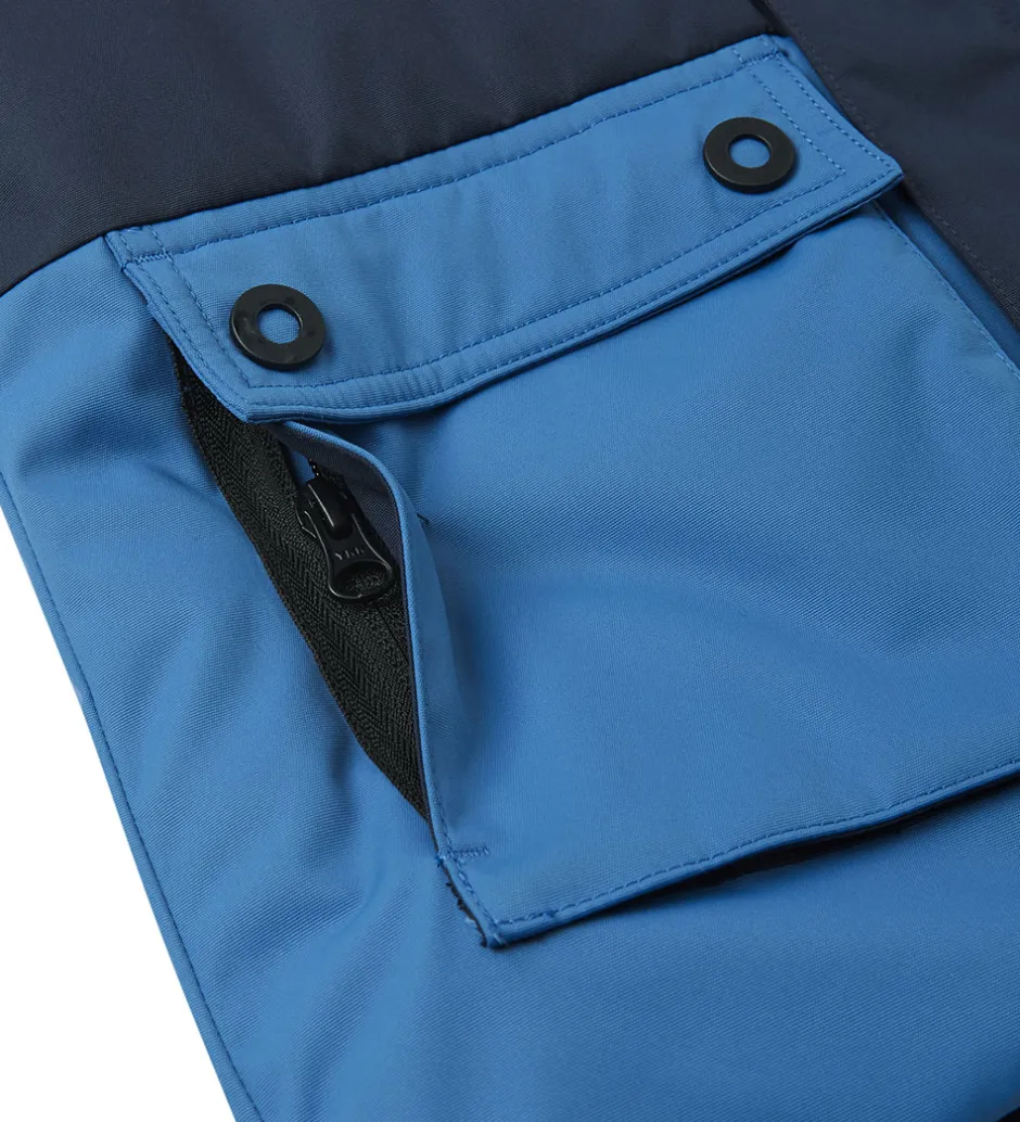 Reima vinterjakken har en aftagelig hætte, som sidder fast med skjulte trykknapper. Ærmerne har fleeceforede kanter og kan justeres ind med velcro. I taljen har vinterjakken en indvendigt justerbar elastikkant.