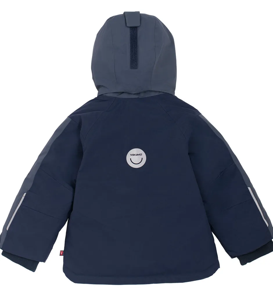 Fin Viking vinterjakke i to mørke, blå nuancer. Vinterjakken har mange refleksdetaljer, heriblandt en logoreflekser flere steder.