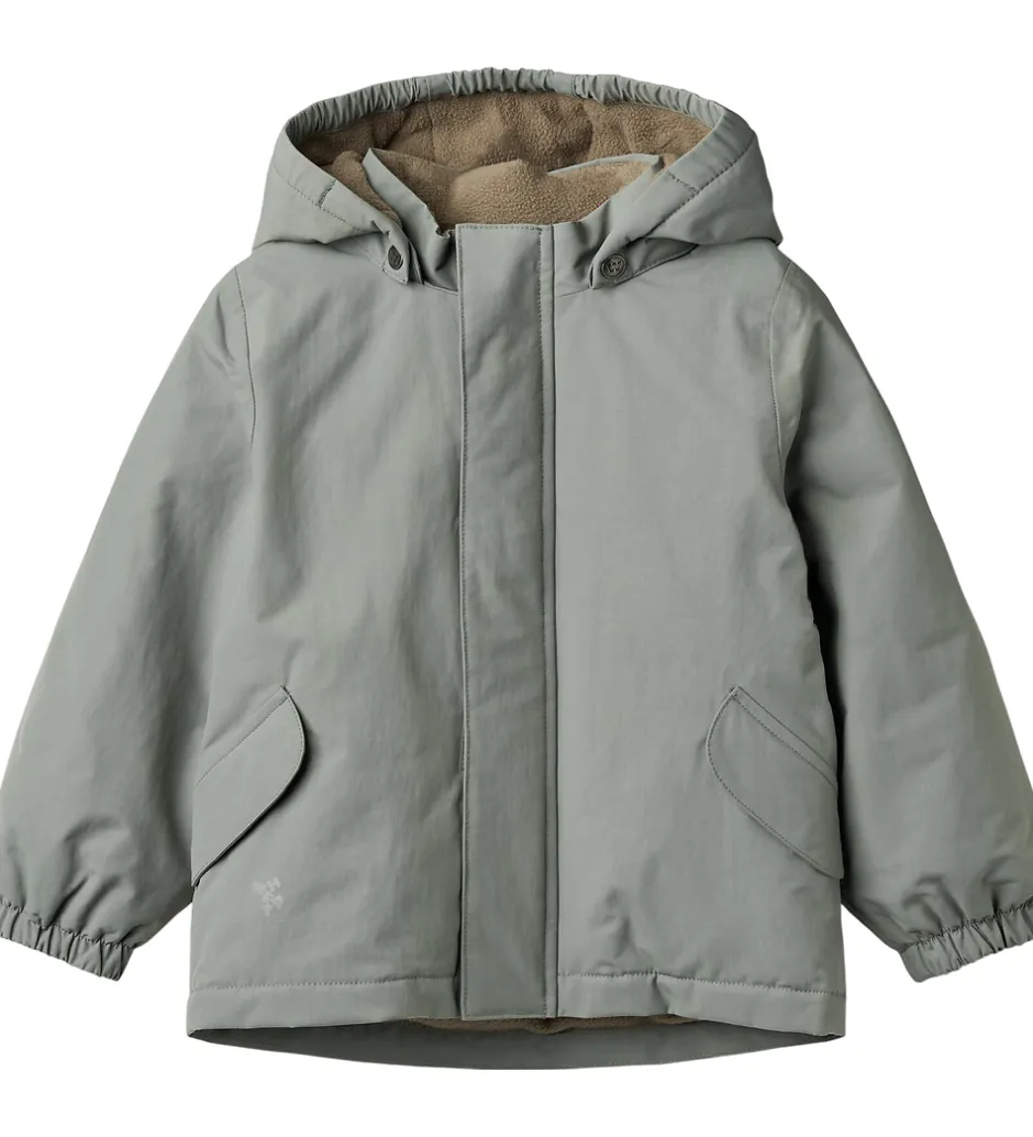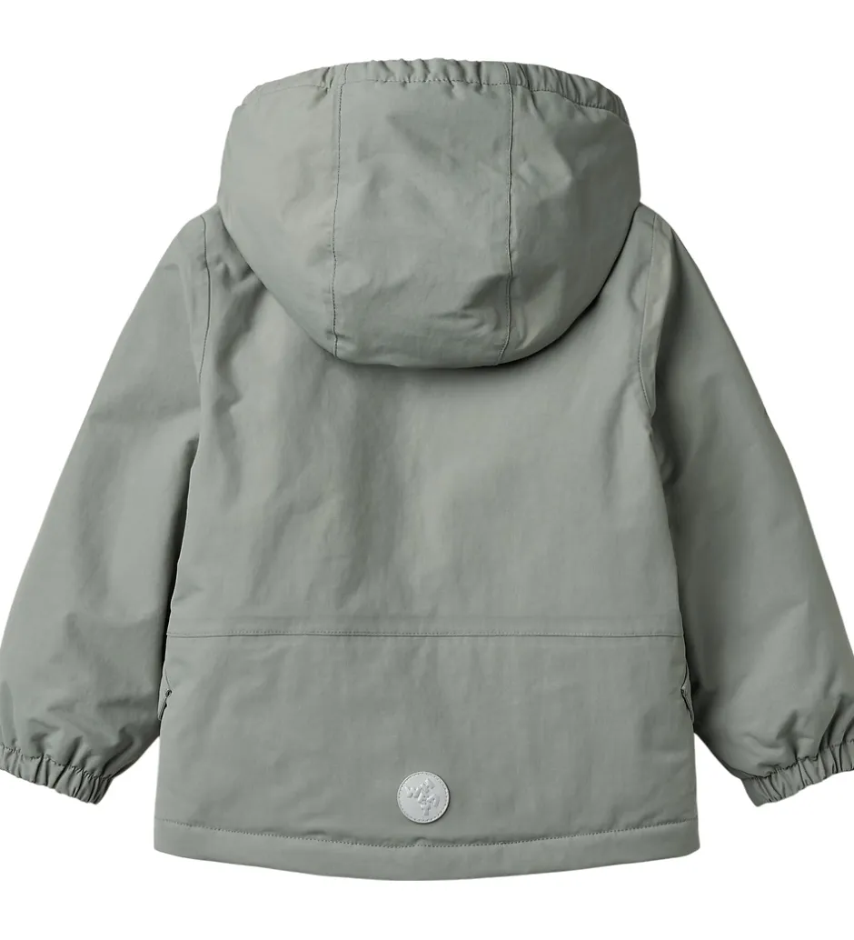 Fin Wheat vinterjakke i grågrøn og med velplacerede reflekslogoer.