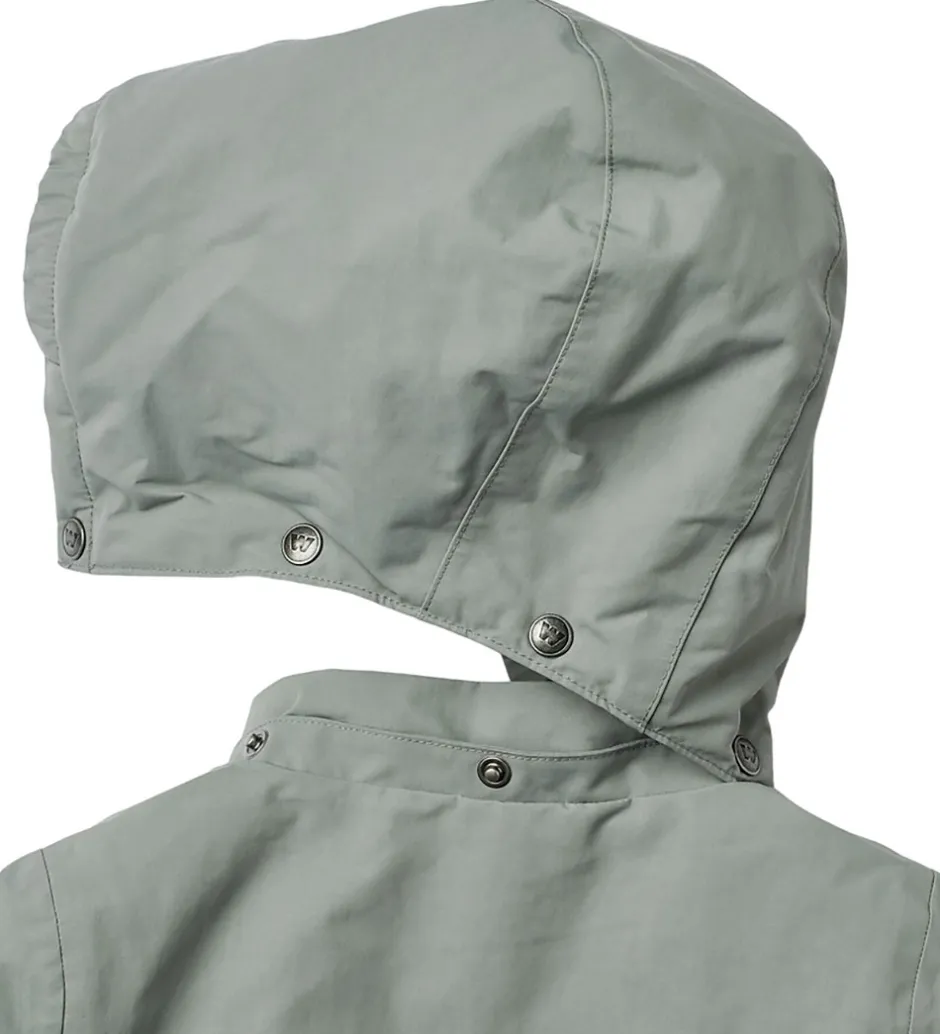 Wheat vinterjakken har en aftagelig hætte, der sidder fast med trykknapper omkring den høje halskrave, og ansigtsåbningen har elastikkant. Ærmerne har fleeceforede elastikkanter i åbningerne.